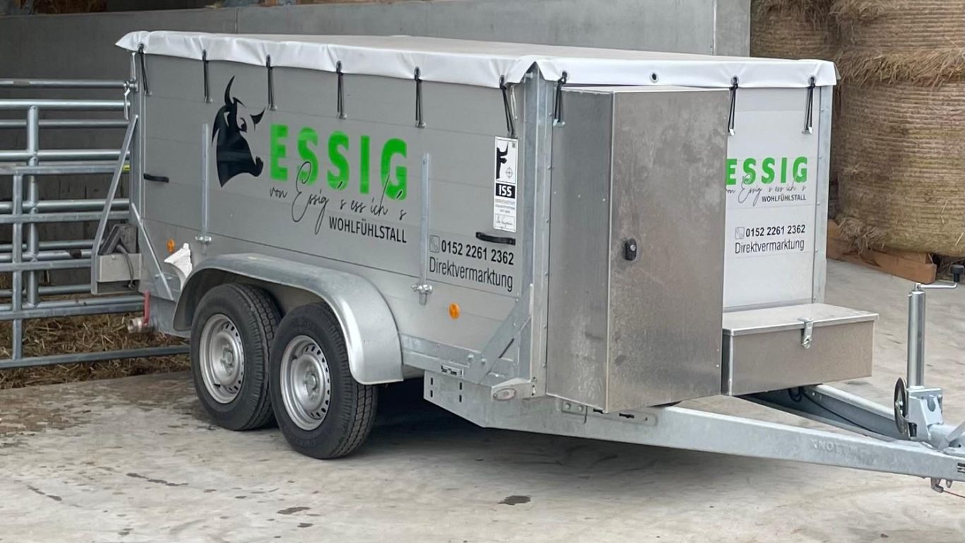 Nach der Betäubung blutet das Rind im Stall aus und wird anschließend mit dem teilmobilen Schlachtanhänger zur Metzgerei Talschenke nach Eppingen gefahren. Dort hängt es im Kühlhaus ab, bis es nach ca. einer Woche an die Kunden verteilt wird